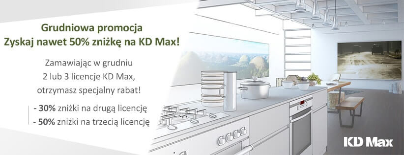 Grudzień to niewątpliwie jeden z najlepszych okresów, aby zdecydować się na nowy program do projektowania mebli kuchennych, kuchni czy też szaf. Program, dzięki któremu odczuwalnie wzrośnie zarówno szybkość, jak i komfort Twojej pracy w nowym roku kalendarzowym. Precyzyjne projekty, zaawansowane możliwości rozkroju, liczne biblioteki materiałów znanych producentów, automatyczna wycena, fotorealistyczne wizualizacje oraz wiele, wiele innych możliwości oferowanych przez KD Max są na wyciągnięcie ręki!