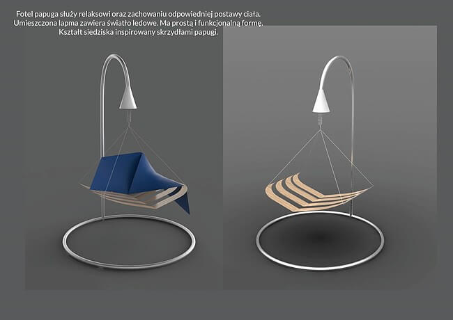 Trend VIII – Karolina Chojnacka, projekt „Fotel Papuga” na podstawie pracy Zofii Szczesiak pt. „Fotel Papuga”.