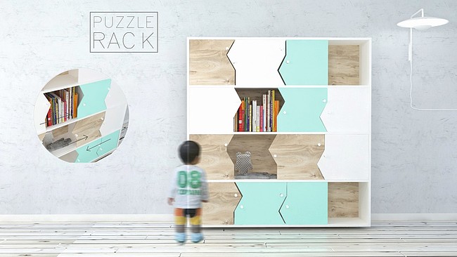 Trend II – Sylwia Siekirka, projekt „Puzzle Rack” na podstawie pracy Bartosza Cieślaka pt. „Szafka z puzzli”.