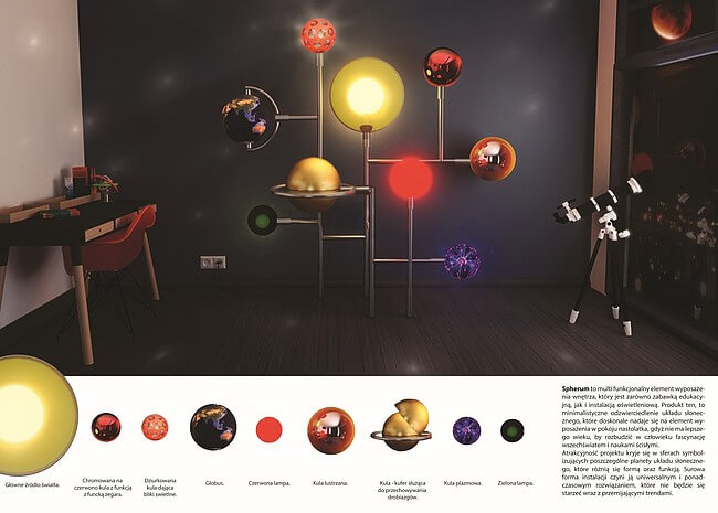 Trend IX – Ewelina Madalińska, projekt „Spherum” na podstawie pracy Pawła Koryckiego pt. „Lampka nocna – Świat planet”.