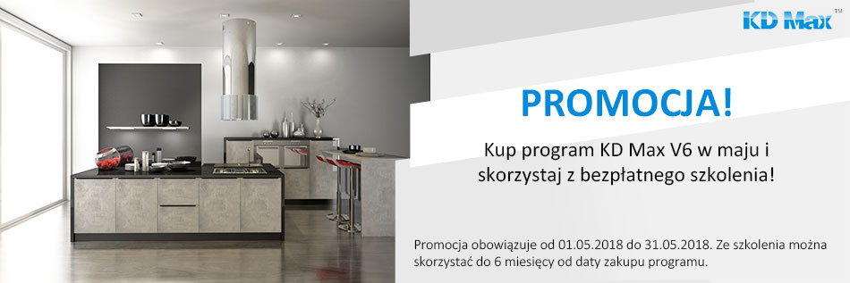 Zapraszamy do skorzystania z naszej majowej promocji. Decydując się na zakup profesjonalnego programu do projektowania mebli i wnętrz KD Max V6 do 31 maja, otrzymasz gratis profesjonalne szkolenie z jego obsługi!